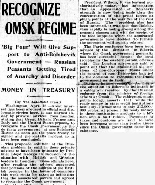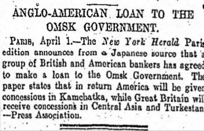 [17] Leadville Herald Democrat, April 19 1919 Associated Press; ‘Anglo-American Loan to the Omsk-Government’, The Scotsman, No. 23,662, April 2 1919, p.7
