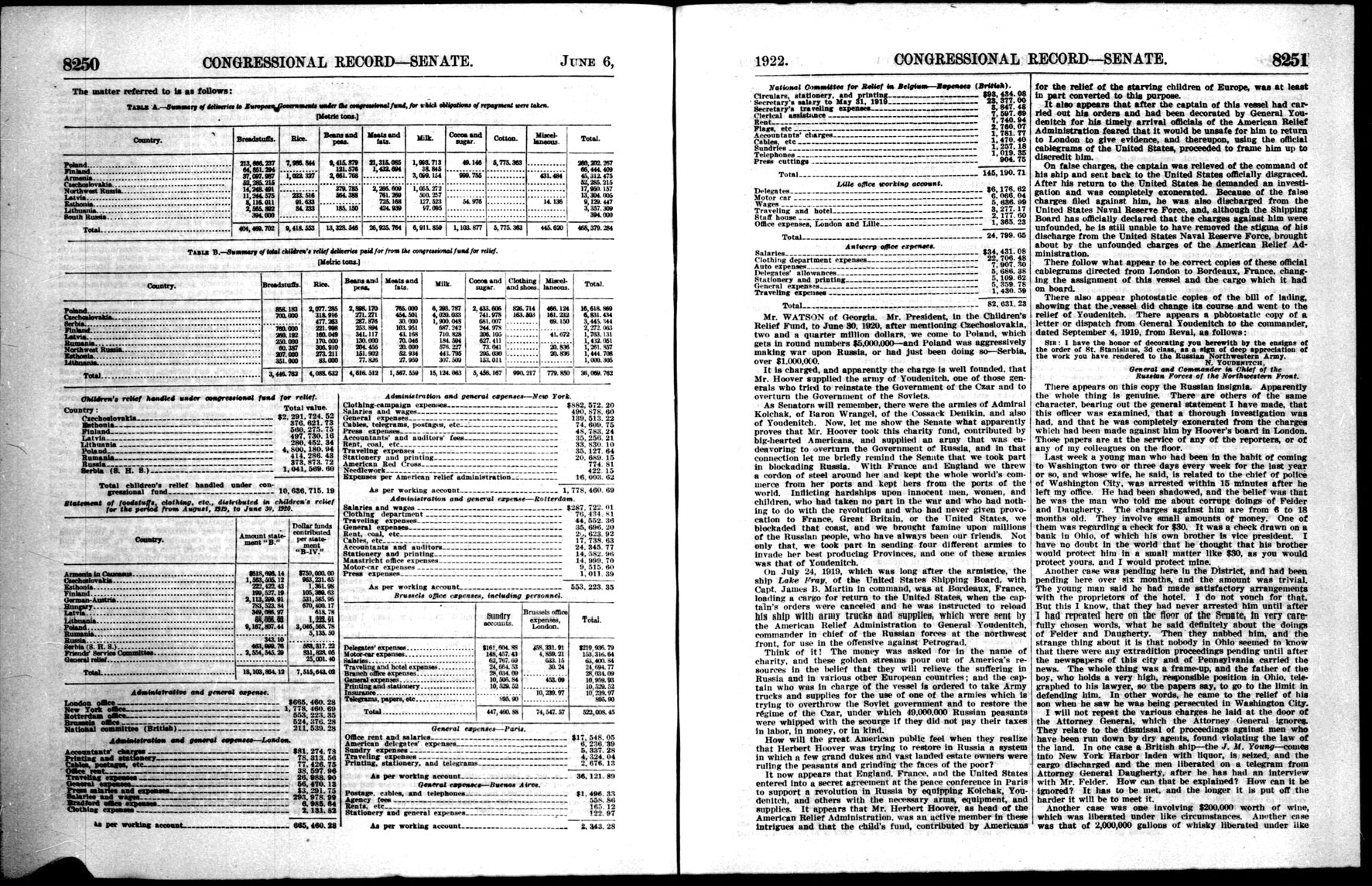 Wilson had already asked for, $100, 000, 000 in European relief. According to a 1921 Senate hearing led by John Reed of Missouri, Hoover admitted much of the aid was directed to the armies of Poland, Finland and Estonia for distribution — key players in the fight against Bolshevism. [10]