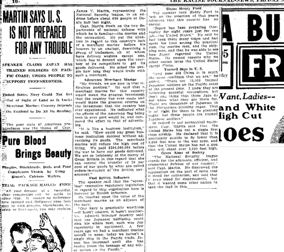 [6] Racine Journal News, 28 February 1916, p.30. The claim about his time aboard the SS Red Cross is made in the report of an address that Martin makes to the National Security League, but I have yet to see any firm evidence. It certainly makes sense in the context of his special relief mission to Reval.