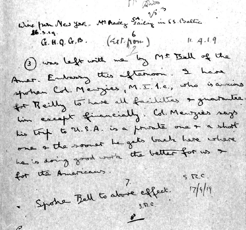 [38] The National Archives, The Security Service: Personal (PF Series) File, Sidney George Reilly, KV-2-827, ‘Wire from New York – Mr Reilly Sailing in SS Baltic’, 11/04/1919