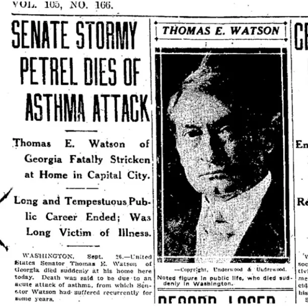 Sadly, Senator Thomas E. Watson never lived to see whether or not his efforts would pay off. In September 1922, just twelve weeks after launching a Senate investigation into Herbert Hoover and the American Relief Administration, Watson died suddenly at home in Washington.