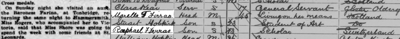 Extraordinarily enough, another tight skulk of crepuscular Russian exiles were also in the vicinity of Farina’s mother back in Tonbridge, the aunt that Florence had visited on the afternoon and evening prior to the attack. It is it possible that Florence was followed from Baroness Farina’s house in Tonbridge back to London? And from London to St Leonards on Sea? Had Rafaele Farina’s prominent security role made Florence a vulnerable target and was he there on the afternoon of her visit?