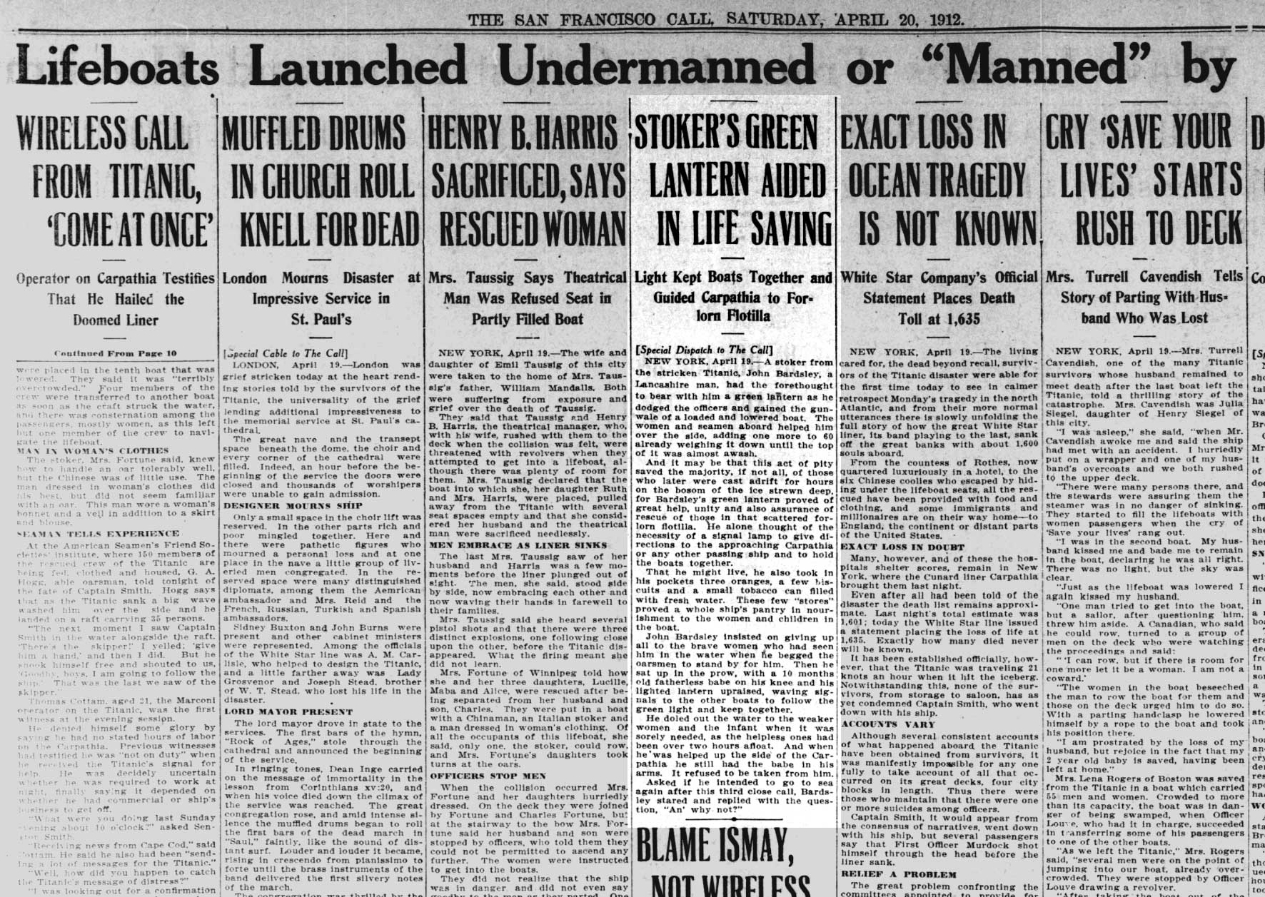 [8] New York Times, April 16, 1912, p.5; New York Tribune, April 16, 1912, p.6
