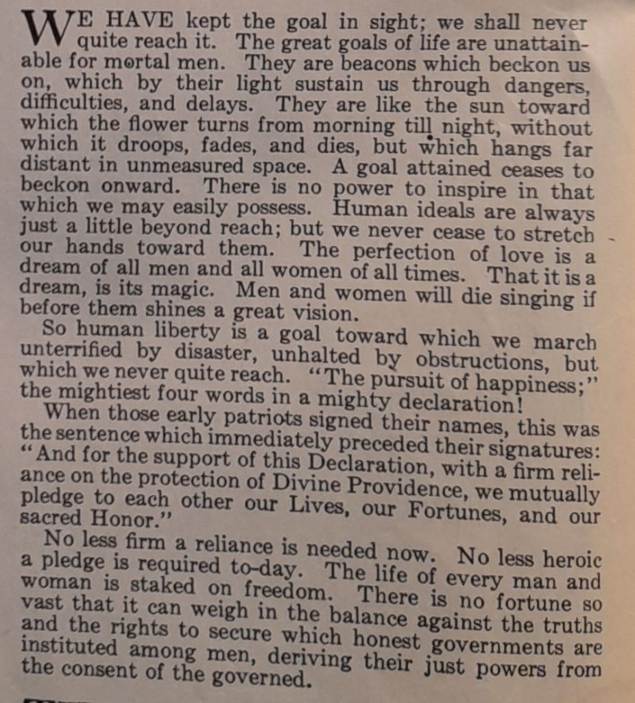 You recognize this? It is the philosophy of the nineteenth century, the philosophy of personal selfishness and national conceit that led to the great war and was indirectly responsible for the bloody deaths of many million young men.